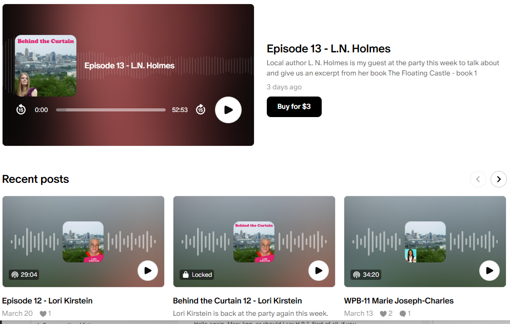 And, for those of you who haven’t quite made up your mind to go Behind the Curtain just yet, there is another option. Notice that the most recent episode (L.N. Holmes) displays a bit more detail, including the option for anybody to access this BTC episode for three bucks.